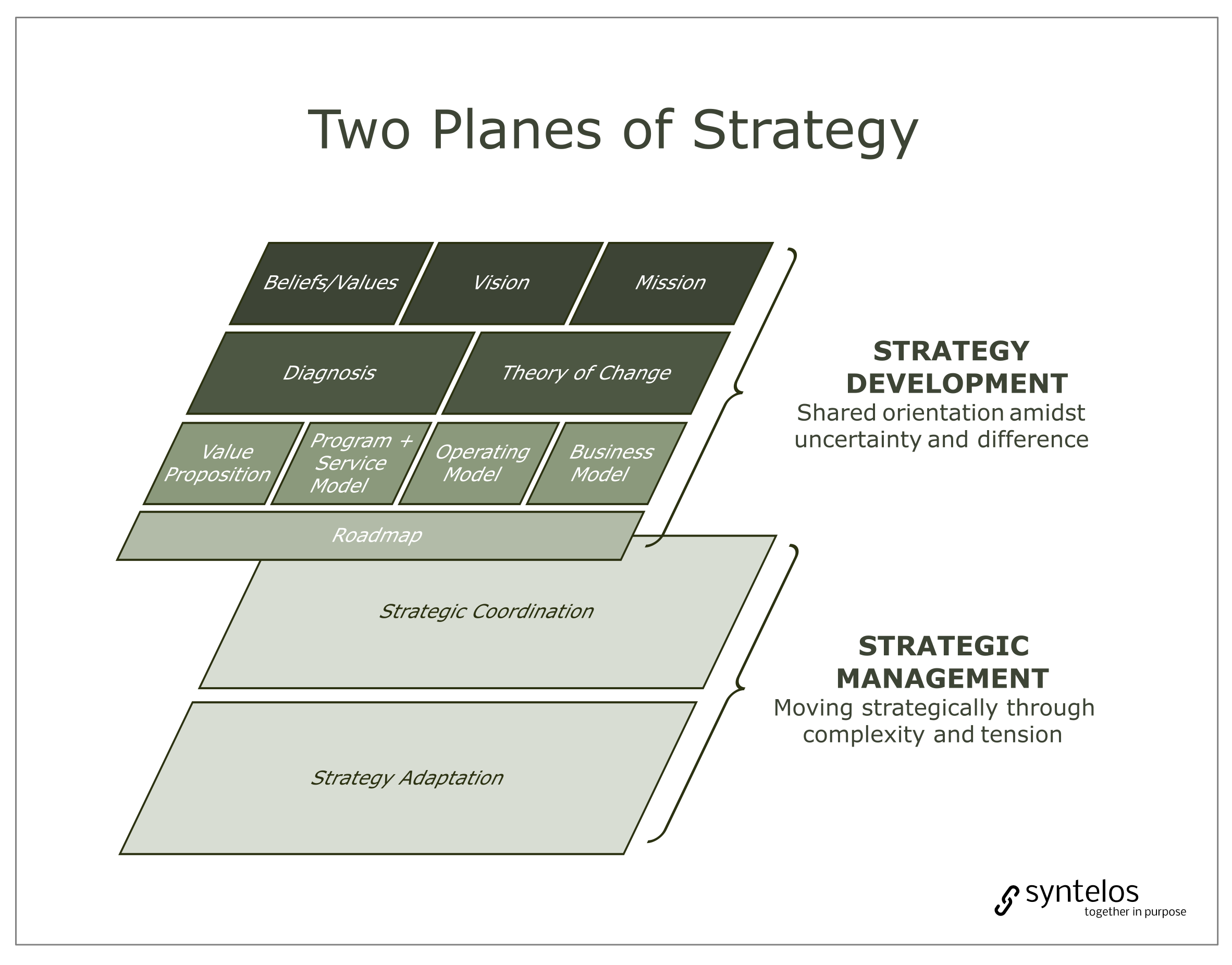Operating fluidly across two planes of strategy helps nonprofit organizations (A) build shared orientation amidst uncertainty and difference and (B) move strategically through complexity and tension.